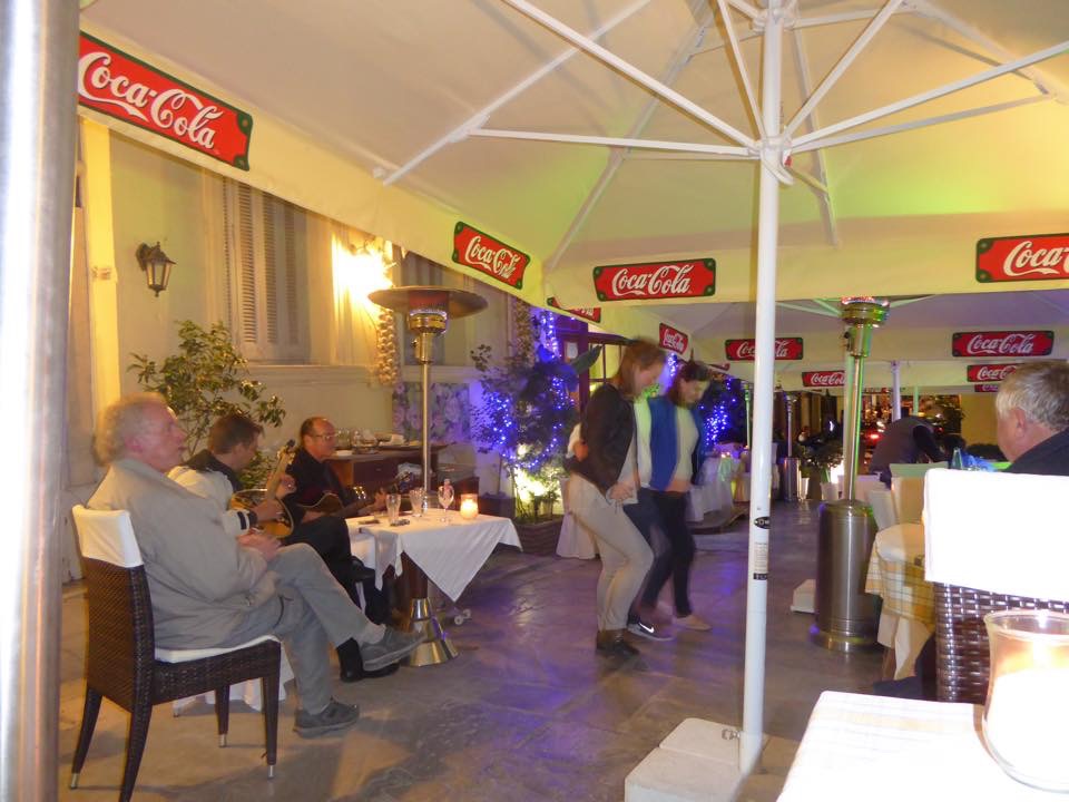Two old musicians fiddled with unknown strings. The Athens folk songs they sang sounded vicissitudes. From time to time, the guests sang along with the them. A few young man and woman also danced freely along with the music. Perhaps it could make them forget about all the unknowns temporarily. The air was casted by faint ancient nameless sadness. The night is truly chilled.