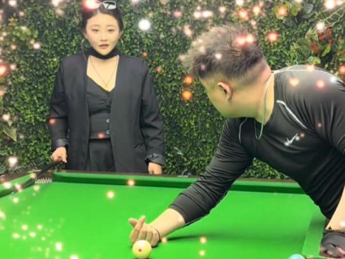 兩口子在玩台球,老公的一個愛心小手勢,看把老婆樂的,結果意想不到。