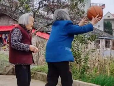 兩位親家老奶奶玩球,玩的就是開心。老年生活歡樂多,快樂很簡單,開心就好。