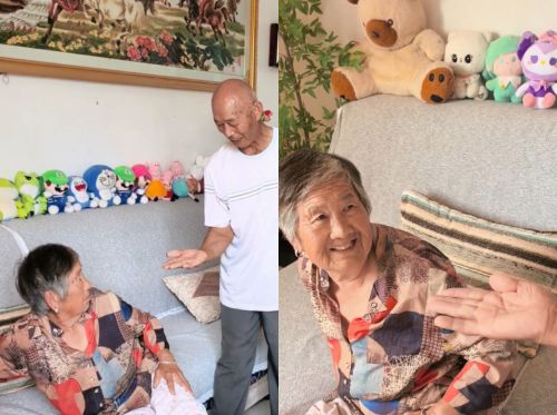 爺爺很調皮,逗奶奶開心,老夫老妻歡樂多,快樂很簡單,開心就好。