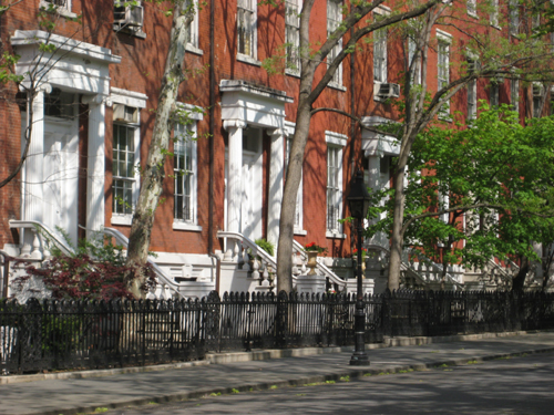 華盛頓廣場周圍是紅牆白柱的歐式小樓