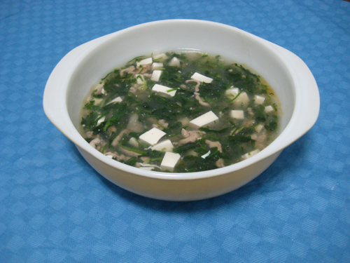 製作:太白粉加水調製成濃漿待用;將豆腐丁、榨菜末入水(按需求放水量)煮開後小火煮10分鐘,開大火將肉和薺菜一起倒入鍋內,加入太白粉漿攪勻,鍋開即熄火,最後加鹽、油等調味。